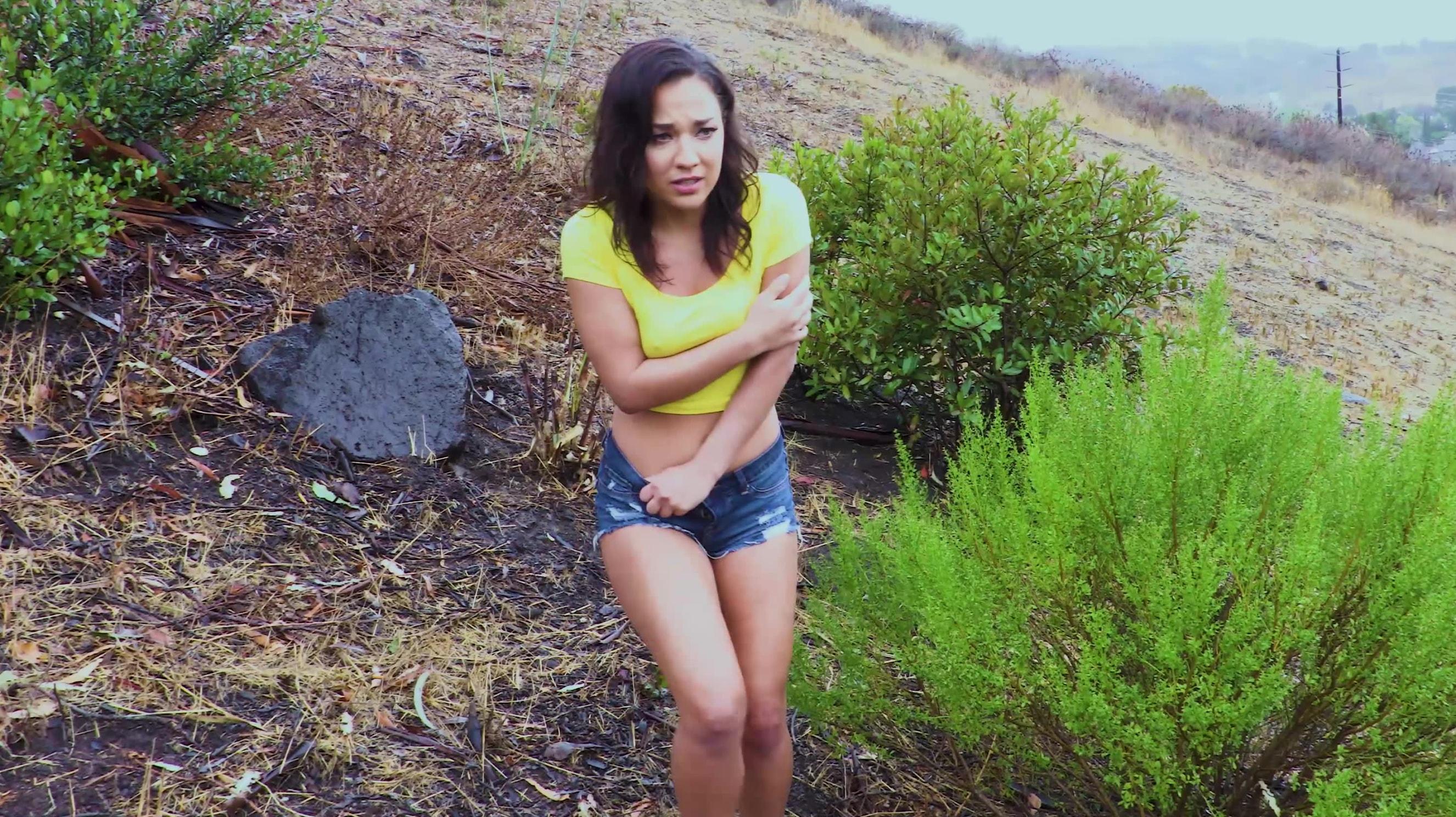 The girl is trying to study, but she can't quite concentrate. That's when her boyfriend comes into the scene. He starts grabbing her boobs, she's telling him to stop but is slowly getting horny. Her boyfriend starts stroking her cunt, then he puts her pants down and starts licking her asshole. Then he starts fingering her asshole and making her wet. His cock is getting hard and he wants her to suck it. He's filling her throat with cock smacking her in the face with it as well. Then he puts her on the table and starts fucking her. First, he fucks her pussy to get his dick wet and then he puts it in her ass. He fucks her until her ass is gaping wide. Then he sits on the chair and lets her get in his lap, so she can jump on his dick. They do this for a while until the guy can't take it anymore so he takes his cock out of her ass and cums on it.